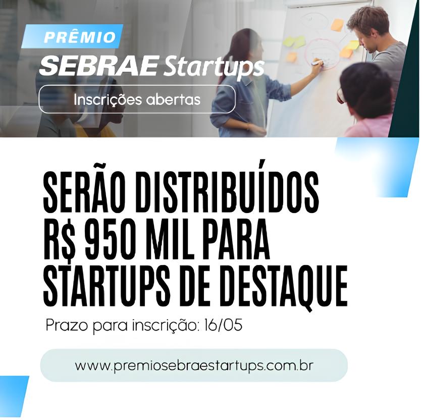 🏆 Inscrições abertas para a 1ª edição do Prêmio Sebrae Startups, que chega com uma premiação total de R$950 mil!