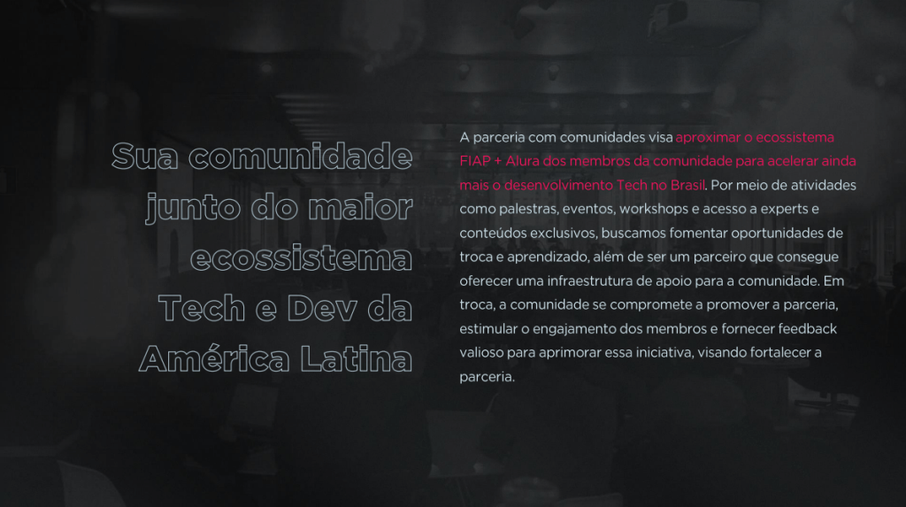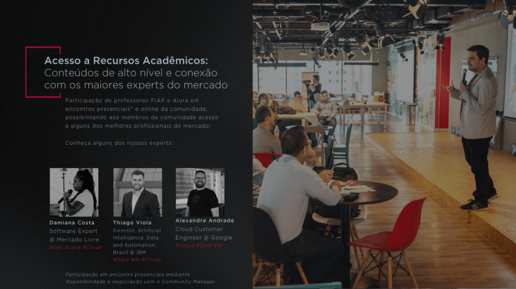 ✅ Condições facilitadas para participação em eventos da FIAP + Alura e PM3 ao longo do ano