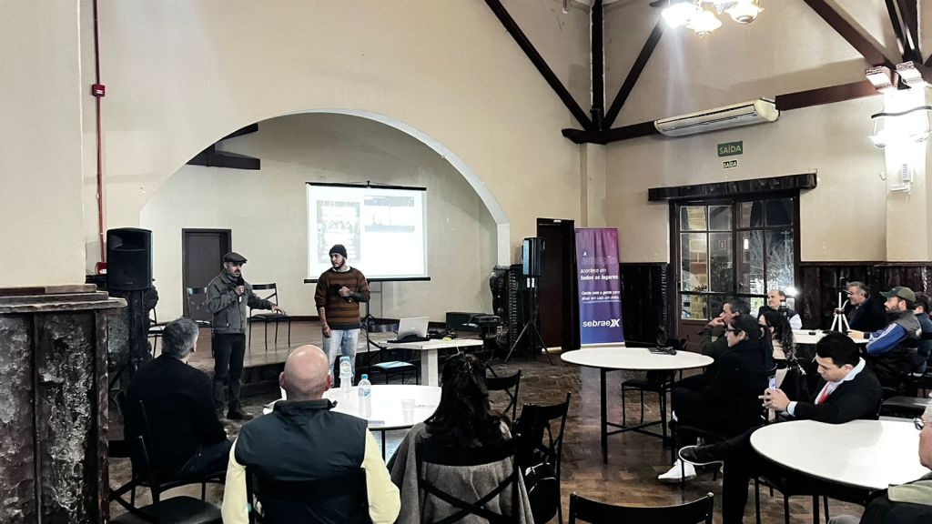 O Fórum iniciou com o agente local de inovação Guilherme Perlin apresentando o ecossistema de Uruguaiana – InovaMun.