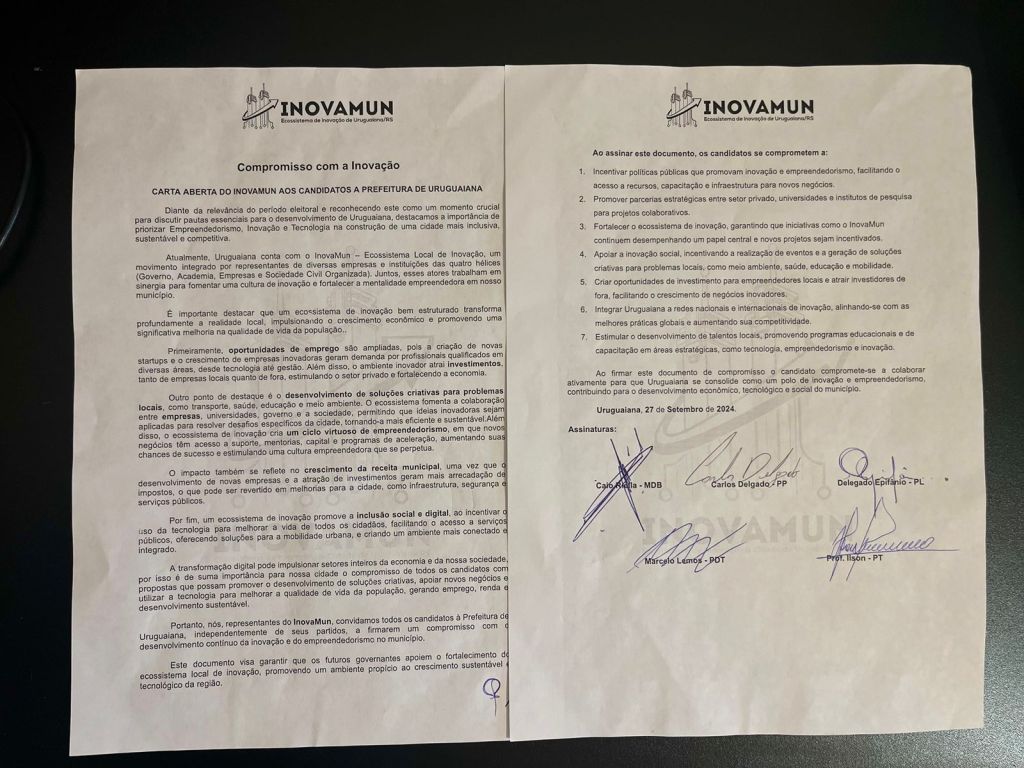 Este compromisso firmado por cada candidato garante que o próximo governo seguirá apoiando o desenvolvimento social e tecnológico de Uruguaiana. 🌍
