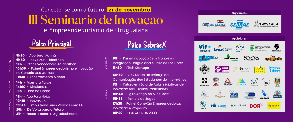 O III Seminário de Inovação e Empreendedorismo de Uruguaiana é gratuito e aberto ao público, sendo uma oportunidade única para empreendedores, estudantes e interessados em inovação se conectarem, aprenderem e colaborarem para o desenvolvimento da cidade. As inscrições podem ser feitas pelo site oficial do evento, e os organizadores esperam contar com a participação de toda a comunidade para um dia dedicado ao crescimento e à troca de ideias.