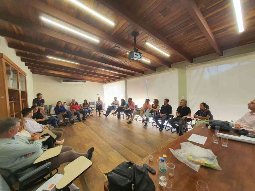 Na sequência, Flaviano Gastão, representante da Feevale Techpark e da F2 Gestão Empresarial, liderou uma dinâmica interativa, voltada para a construção do planejamento estratégico. Essa atividade promoveu trocas ricas entre empresários, educadores, gestores e representantes do ecossistema de inovação, evidenciando a força da colaboração entre diferentes setores para o sucesso da iniciativa.