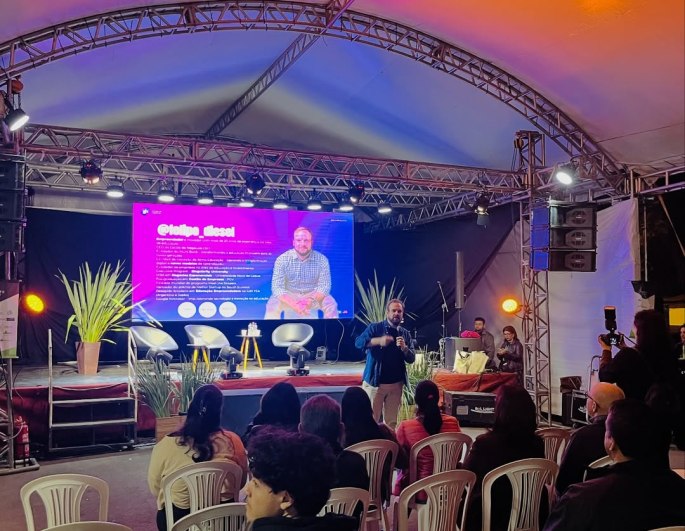 O primeiro dia do evento encerrou com a inspiradora palestra “Negócios do Futuro: Propósito e Escalabilidade”, conduzida por Felipe Diesel, reforçando o potencial transformador da inovação para o desenvolvimento regional.